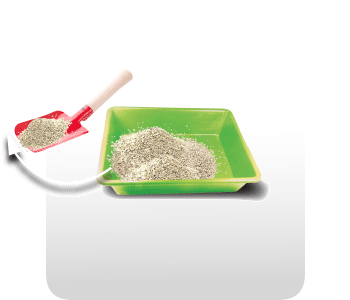 Coloque uma camada de Gatozim em torno de 5 cm na bandeja higiênica.